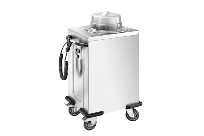 Tellerwärmer Edelstahl, Modell einfach 50-60 Teller, digitaler Thermostat, mit Umluft beheizt, Tellerduchmesser regulierbar (18-28cm), 4 Lenkrollen D=12.5cm (2 mit Feststellern) 1 bzw. 2 Kunststoff-Deckel inkl. 230V/0.9kW, 30°-110°C, 40kg, 65x48x106cm Bestelleinheit = Stück