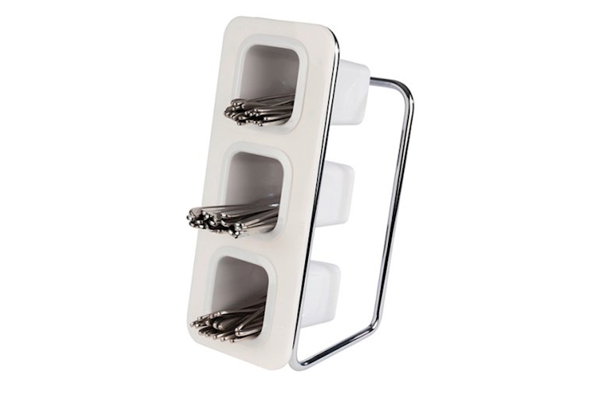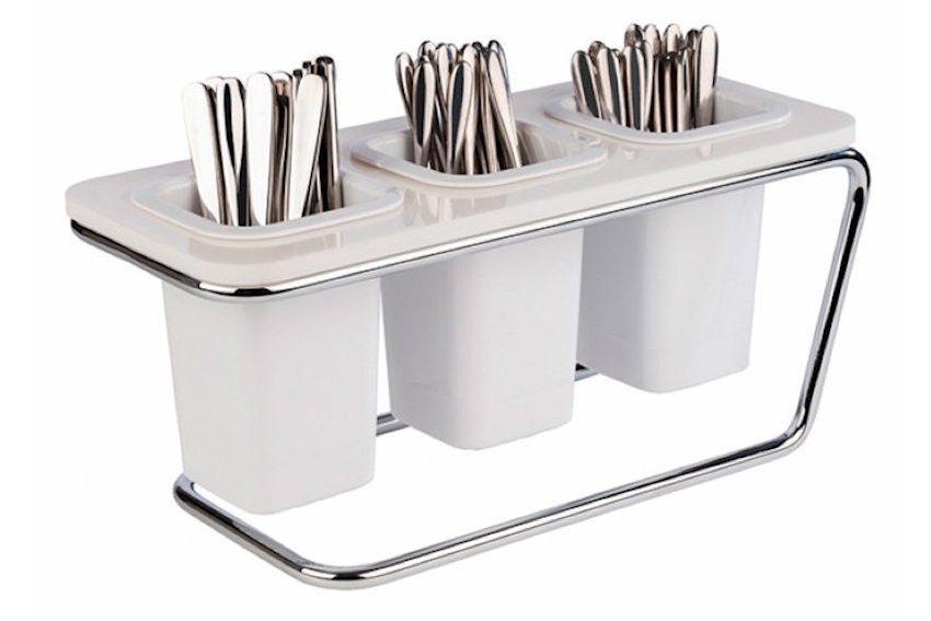 Besteckständer Trible Tower 4-teilig 18x26x43cm, 1 Gestell Metall verchromt + 3 Köcher Melamin Bestelleinheit = Stück